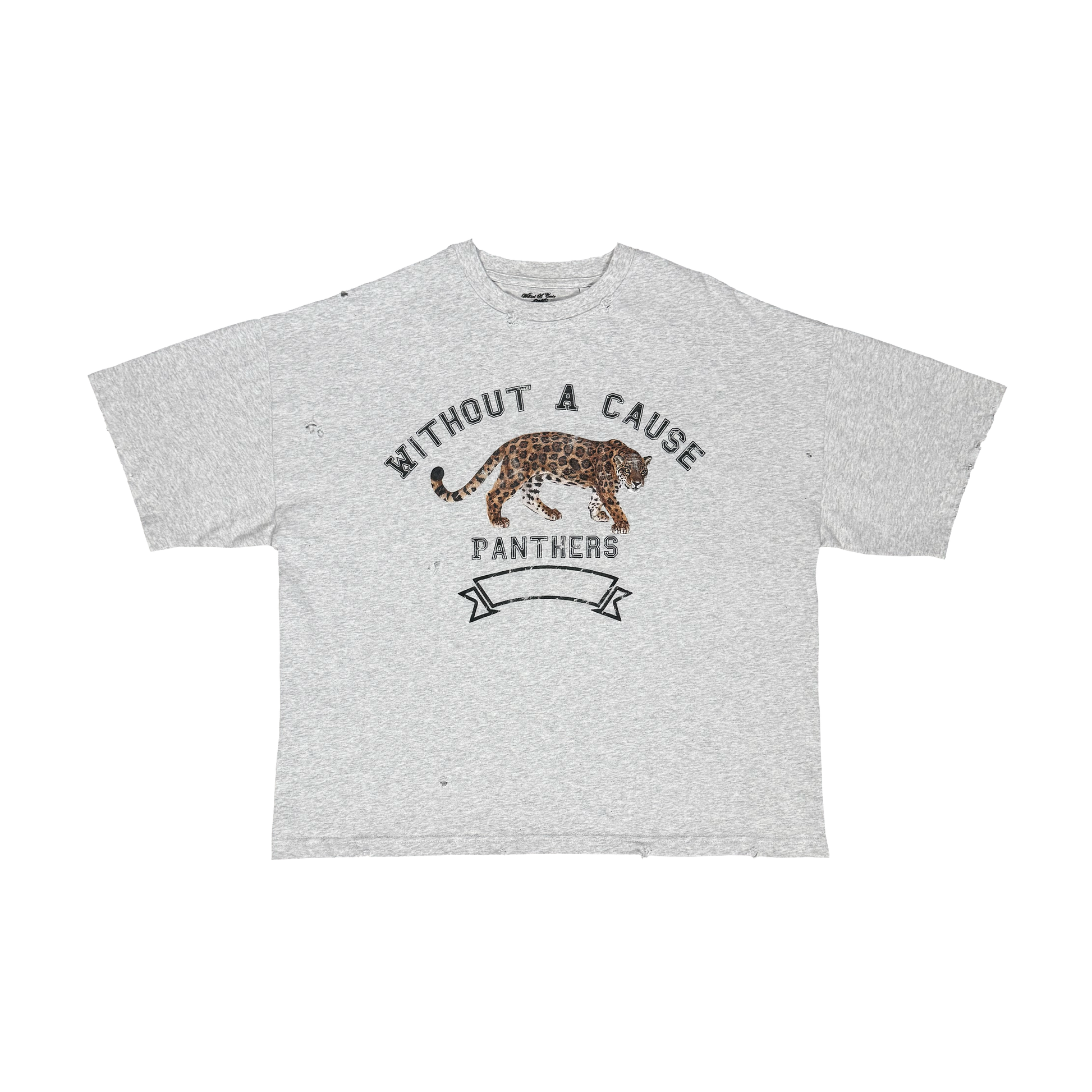 Without A Cause Panthers P.E. distressed boxy tee. We recommend going true to size as our tees are always preshrunk and fit slightly oversized. We always recommend machine washing in cold water and air drying to keep the garments in great condition. All sales are final due to the limited quantity; check out with the correct sizes and items.